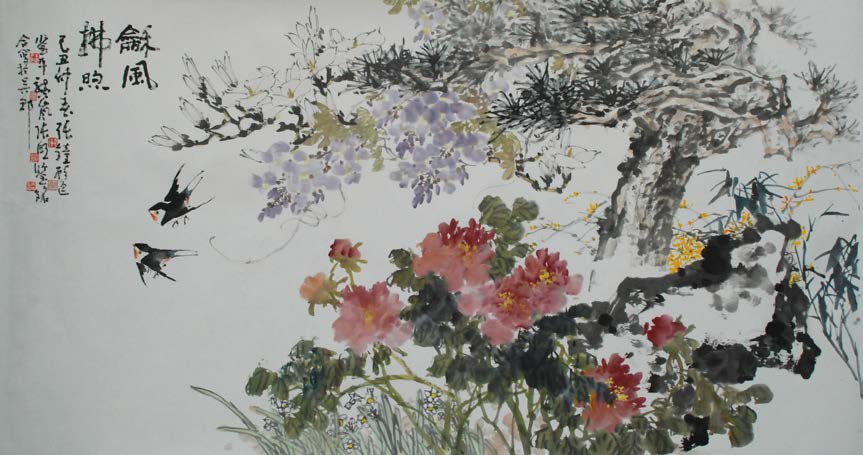 刺绣作品《和风拂煦》(绣面规格: 120cm×240cm 外框规格: 151cm ×291cm)