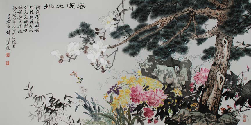 刺绣作品《春暖大地》(绣面规格: 120cm×240cm 外框规格: 151cm ×291cm)