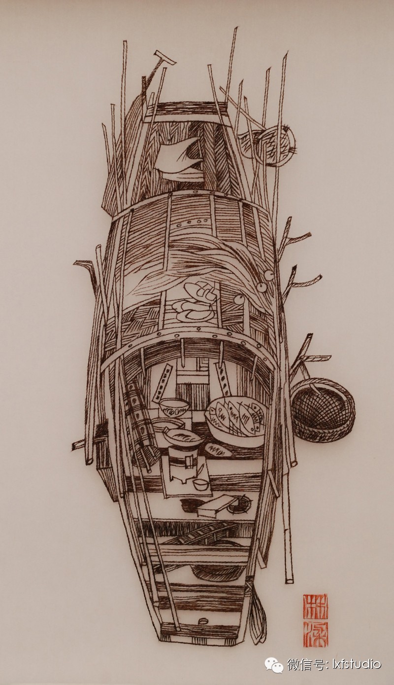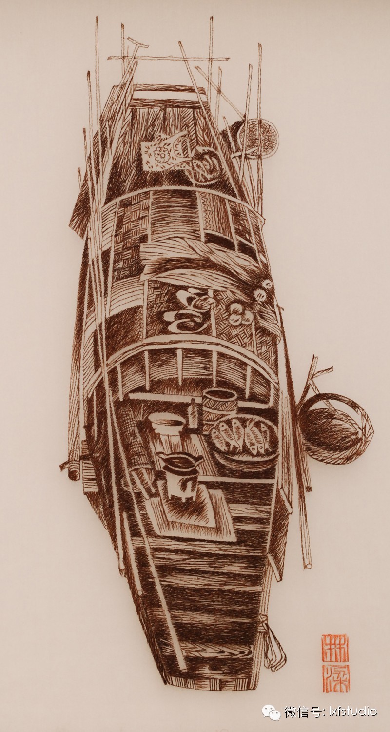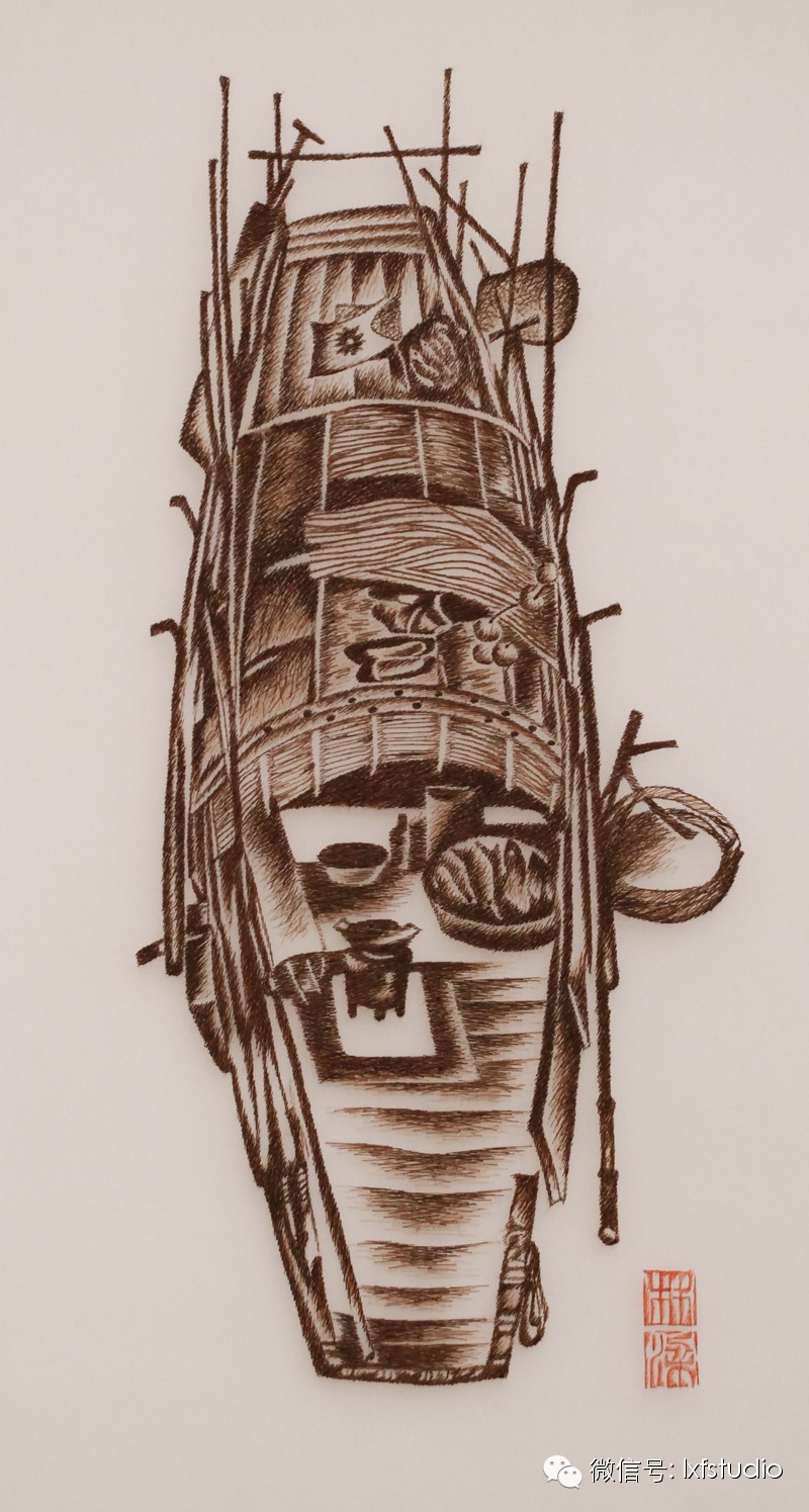 创作灵感来源于京杭大运河上的一条船,一条充满了生活气息与生命活力之船,一条亘古不变与生生不息之船,一条富有“同舟共济”与“满载而归”美好寓意之船。