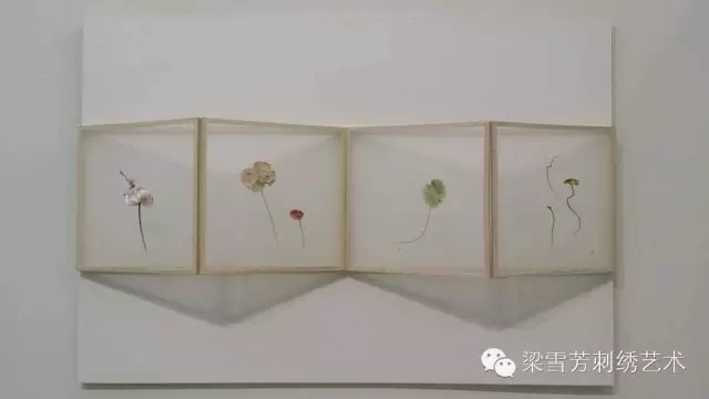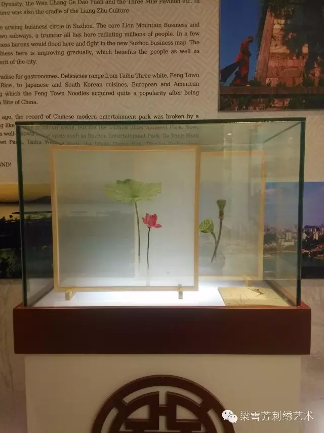 梁雪芳老师原创刺绣作品《尔若盛开》,作为此次苏州高新区微展苏绣的展示作品,简洁、明朗的形式将荷塘的一片冬荷与艺术符号学联系在一起,通过刺绣表达她的艺术情感,给人以遐想的空间。