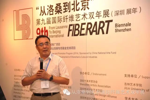 “从洛桑到北京”第九届国际纤维艺术双年展组委会副主席周利群教授作组展、策展工作报告。他说:“组委会各机构自2014年项目立项至今,先后组织召开了策展人、志愿者代表、作品征集、资格评审、媒体推广、视觉形象设计、画册出版、产业论坛、运输布展等40多次工作会议。保证各环节有机衔接,体现了“从洛桑到北京”的国际性、学术性、包容性、亲民性。”