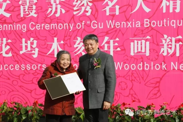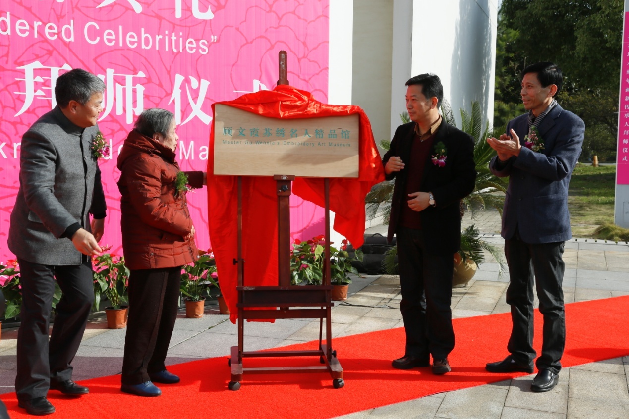 2015年12月4日,“顾文霞苏绣名人精品馆”开馆典礼暨桃花坞木刻年画社新传承人拜师仪式在苏州工艺美术职业技术学院举行。