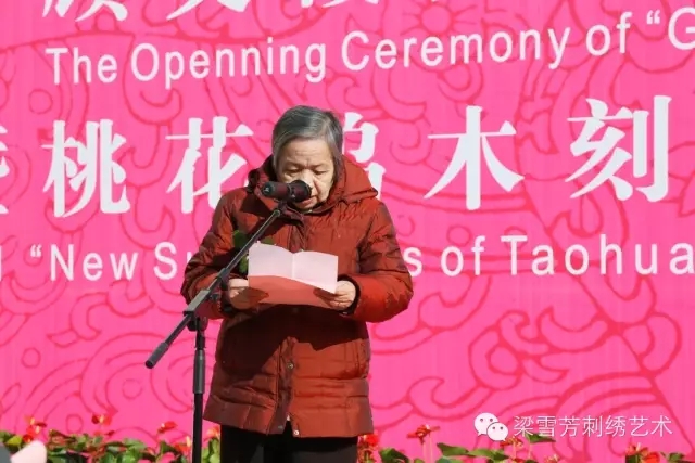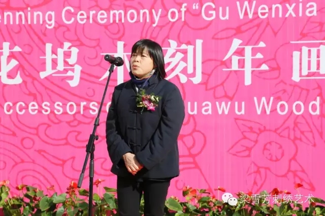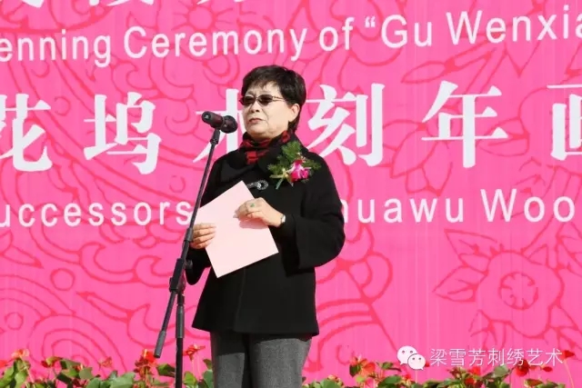 镇湖刺绣行业协会副会长梁雪芳讲话
