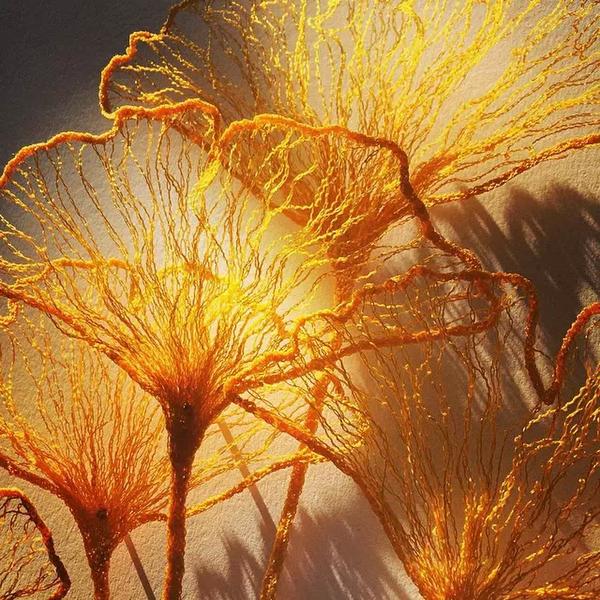Meredith的特殊刺绣方法让自然界的纹理在她手中得到完美呈现。“我所采用的刺绣方法并非布上刺绣,绣品的结构得以在三维空间里出现。”