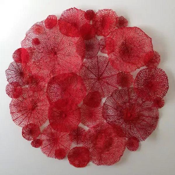 “从记事开始,树叶镂空的形态就给我留下了深刻的印象。”澳大利亚艺术家Meredith Woolnough模仿珊瑚、树叶及其他自然元素进行刺绣作品创作。“大自然永远是灵感的源泉。”Meredith说。