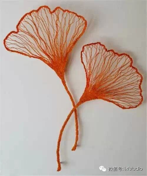 来自澳大利亚女艺术家Meredith Woolnough的新派刺绣——用水溶布和缝纫机做出的叶脉刺绣。