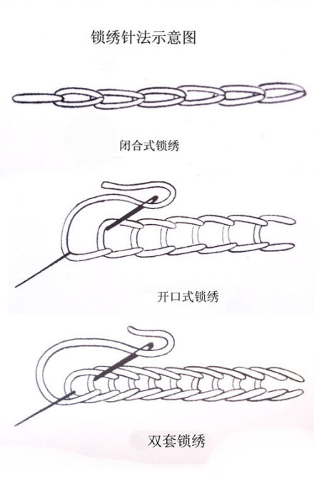 针法组织:以并列的等长的线条,针针扣套而成,以此类推。
