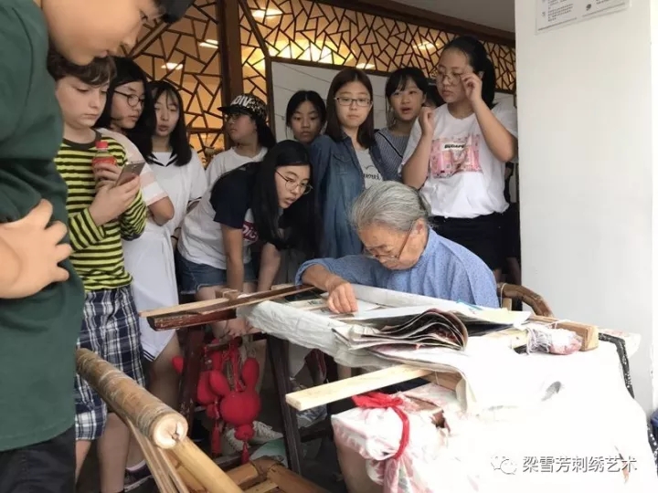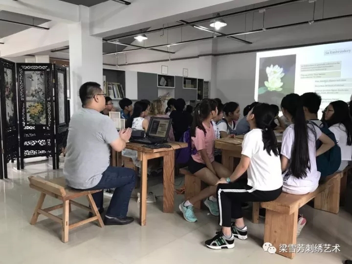 9月27日,苏州德威英国国际学校中学部的30多名师生前来参观“中国刺绣艺术馆”、梁雪芳刺绣工作室(一零一绣吧)及体验刺绣。绣吧邹老师担任随队英文讲解,以及“一0一绣吧DIY苏绣体验课程”的英文辅导工作。